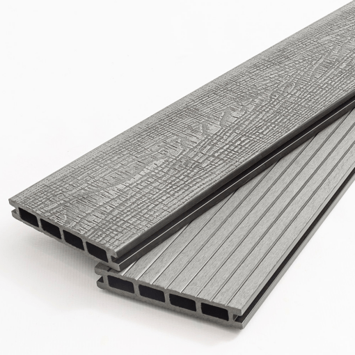 Our decking boards offer two surface options, providing both aesthetics and enhanced grip when wet.