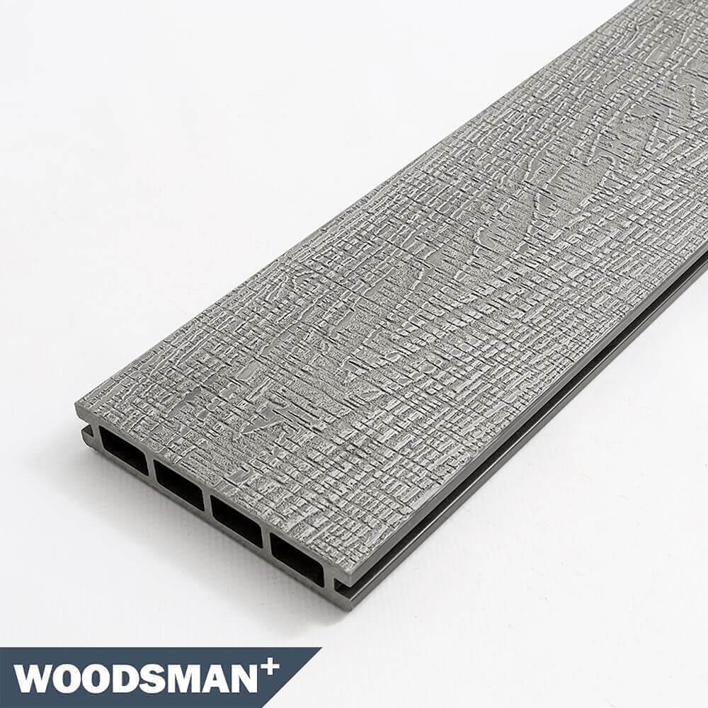 Stone Grey Composite Decking Board from Tough Decking are a commercial-grade two sided (Woodsman+ & Active+ Finish) composite board that delivers a clean, professional finish to any deck area.